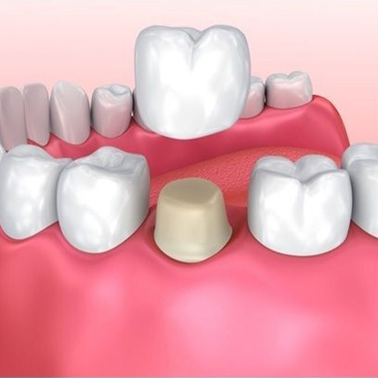 A temporary crown is placed while the permanent one is fabricated.